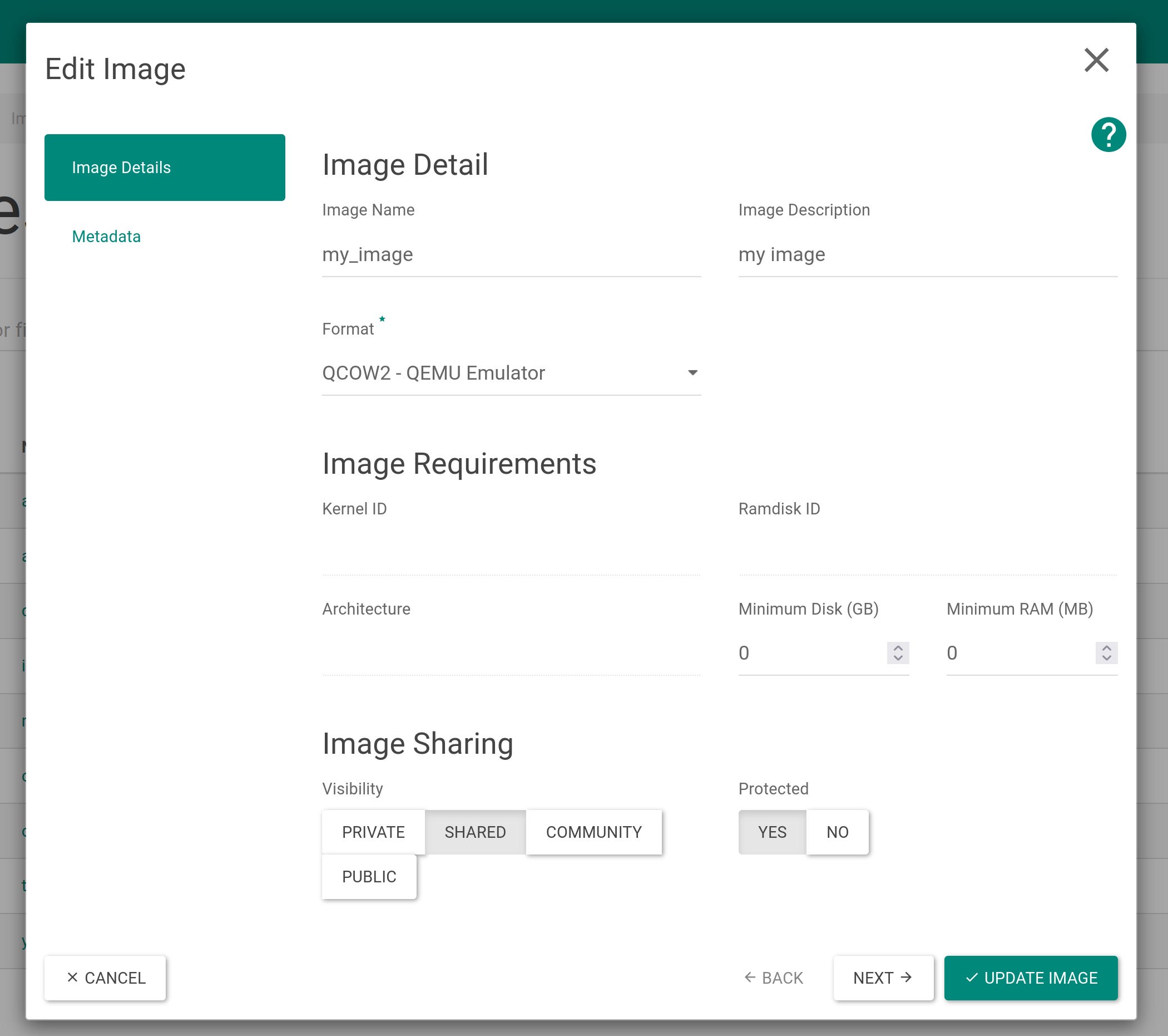 I had previously interacted with the Openstack Horizon dashboard when expanding the features displayed in an image drawer.